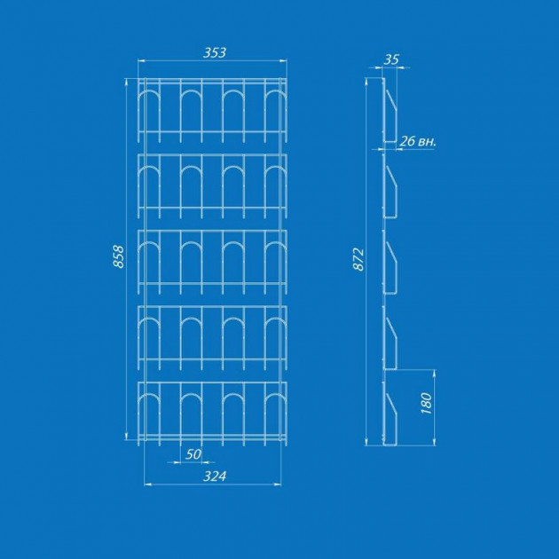 Дисплей навесной под газеты, 5 прижимных карманов