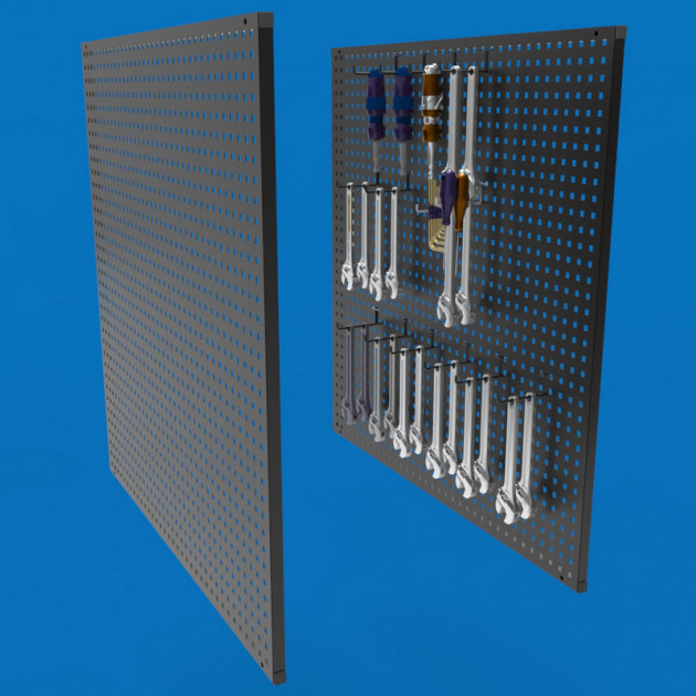 Данный вид панели идеально подходит для крепления на стены или шкафы, а также для установки на задней стенке рабочих столов, что позволяет удобно размещать часто используемые инструменты.