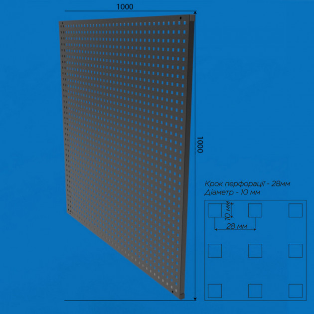 Перфорированная панель для инструментов 100х100 усиленная, S-1мм, ячейка 5х5
