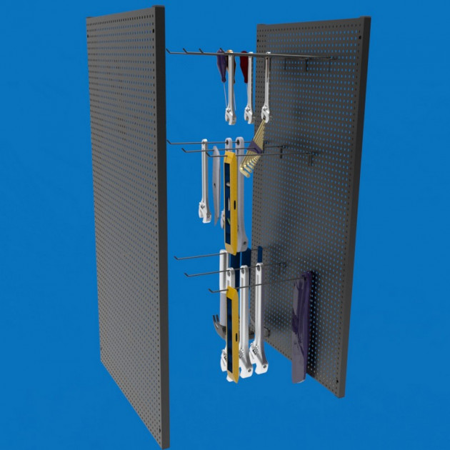 Данный вид панели идеально подходит для крепления на стены или шкафы, а также для установки на задней стенке рабочих столов, что позволяет удобно размещать часто используемые инструменты.