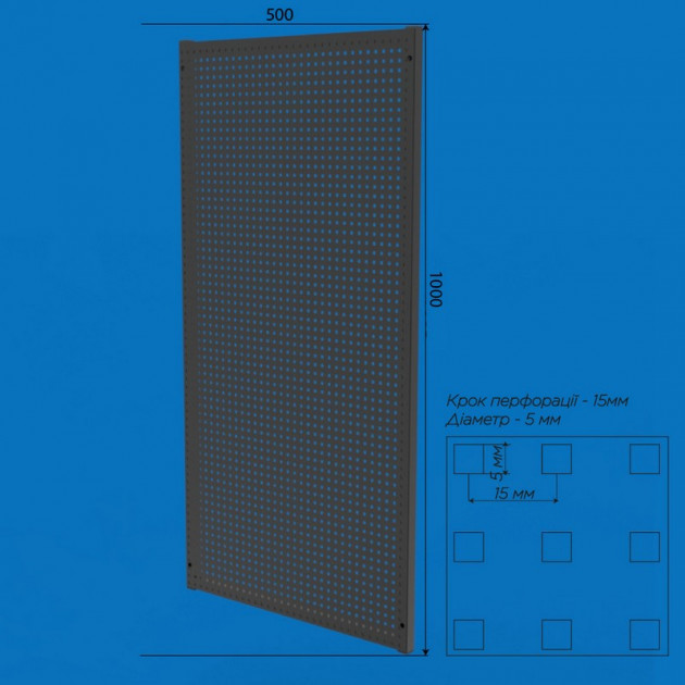 Перфорированная панель для инструментов 50х100 усиленная, S-1мм, ячейка 5х5