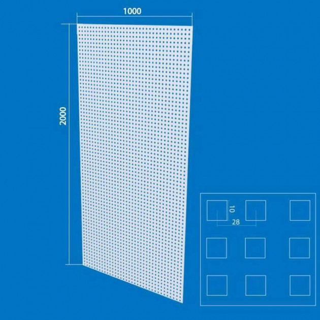 Перфорированный лист для инструментов окрашенный 100х200, ячейка 10х10 (S-1 мм)
