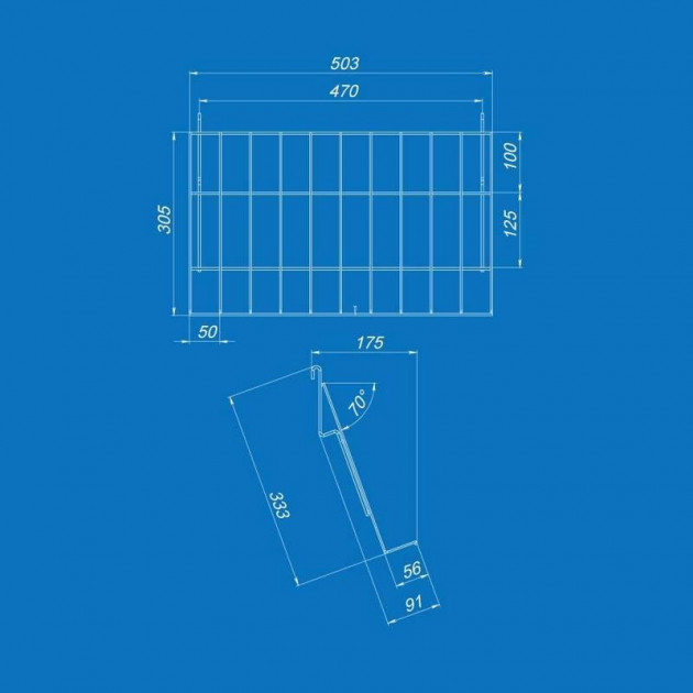 Полка наклонная на сетку 50 мм, угол наклона 70°
