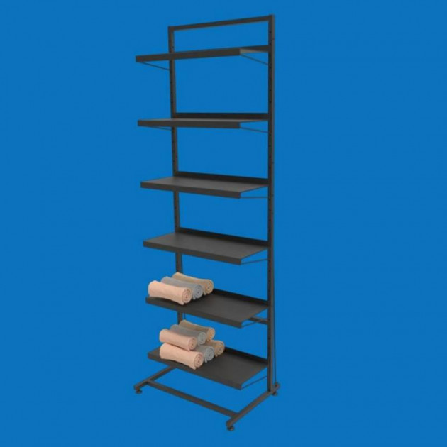 Зручний і практичний стелаж для магазинів, торгових точок, виставкових залів і складів. Оснащений 6 міцними металевими полицями, що витримують значні навантаження. Підходить для викладки будь-яких товарів: продукти, побутова хімія, одяг, аксесуари, канцтовари.