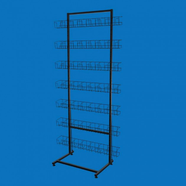 Стеллаж состоит из: металлического корпуса, семи ярусов с карманами и регулируемых ножек. Такая модель проста в сборке и перемещении, а регулируемые ножки позволяют разместить стеллаж на любой поверхности.
