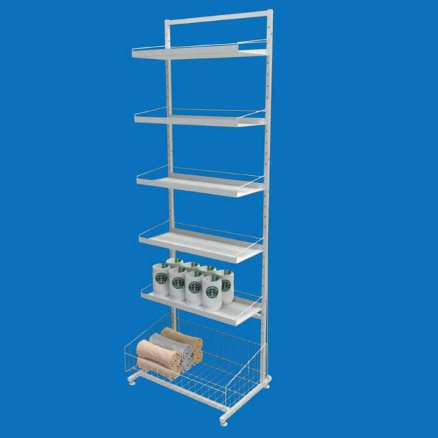 Стеллаж торговый с листовыми полками 5 шт. и корзина накопительная