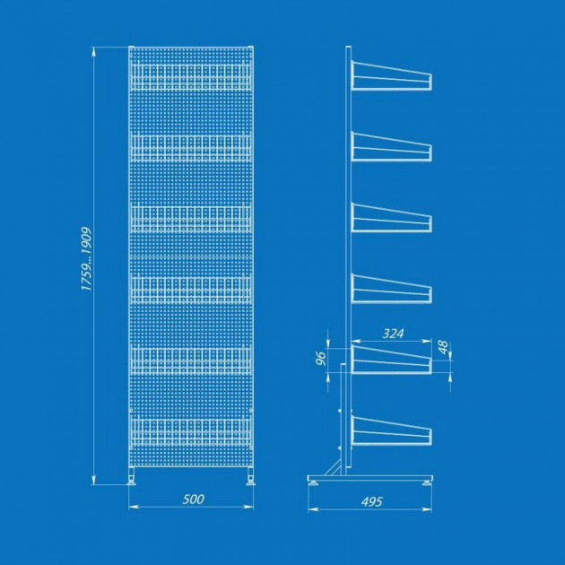 Стійка торгова з перфорованою панеллю на 6 кошиків 50х185, S-0,8 мм