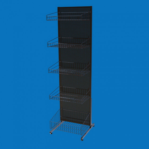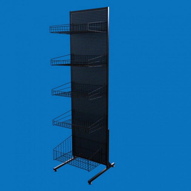 Стійка торгова з перфорованою панеллю на 5 кошиків 50х185, S-0,8 мм, чорна