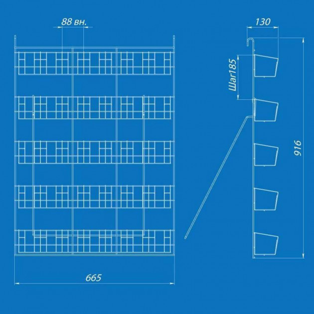Компактный и удобный стенд, предназначенный для демонстрации и продажи фасованных семян, специй и других товаров. Оснащён 35 широкими карманами, расположенными на 5 сетчатых полках (по 7 карманов в каждом ярусе).