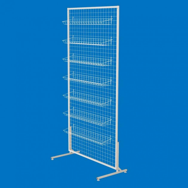 Стойка-сетка 100х180 с корзинами 85х15 (7 штук), белая