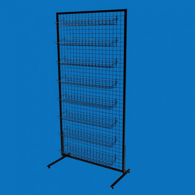 Черная торговая стойка-сетка на 8 навесных корзин