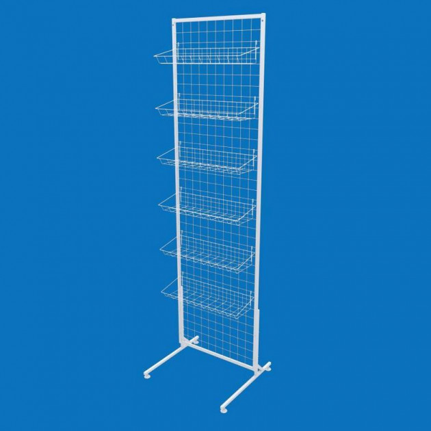 Біла торгова стійка-сітка з 6 навісними кошиками Універсальна стійка з сітчастою основою і 6 знімни..