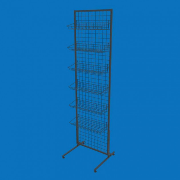 Універсальна стійка з сітчастою основою і 6 знімними кошиками — це функціональне торговельне обладнання, створене для компактної і наочної викладки товару. Завдяки стійкій металевій конструкції і модульності, її легко адаптувати під різні завдання і типи продукції.